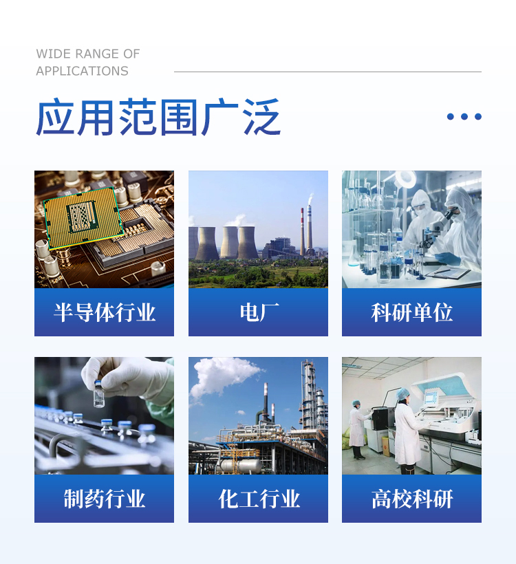 药用水(纯化水、注射用水)的离监测和实验室测试,以及清洁验证;电子行业、食品行业等。
